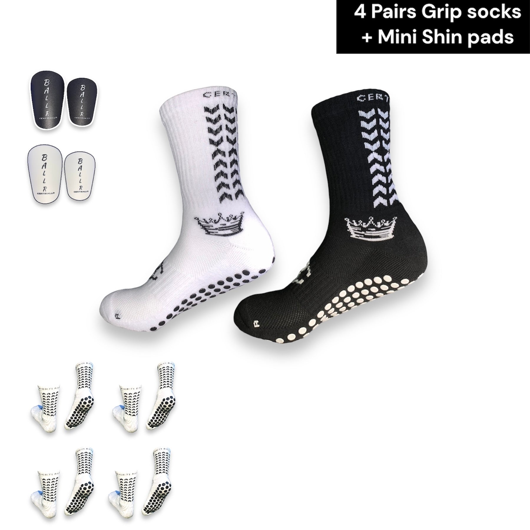 Le paquet comprend 4 paires de chaussettes Premium Grip et 2 mini coussinets (8 x 5 cm) pour vous assurer d'avoir tout ce dont vous avez besoin pour les jours de match et d'entraînement.